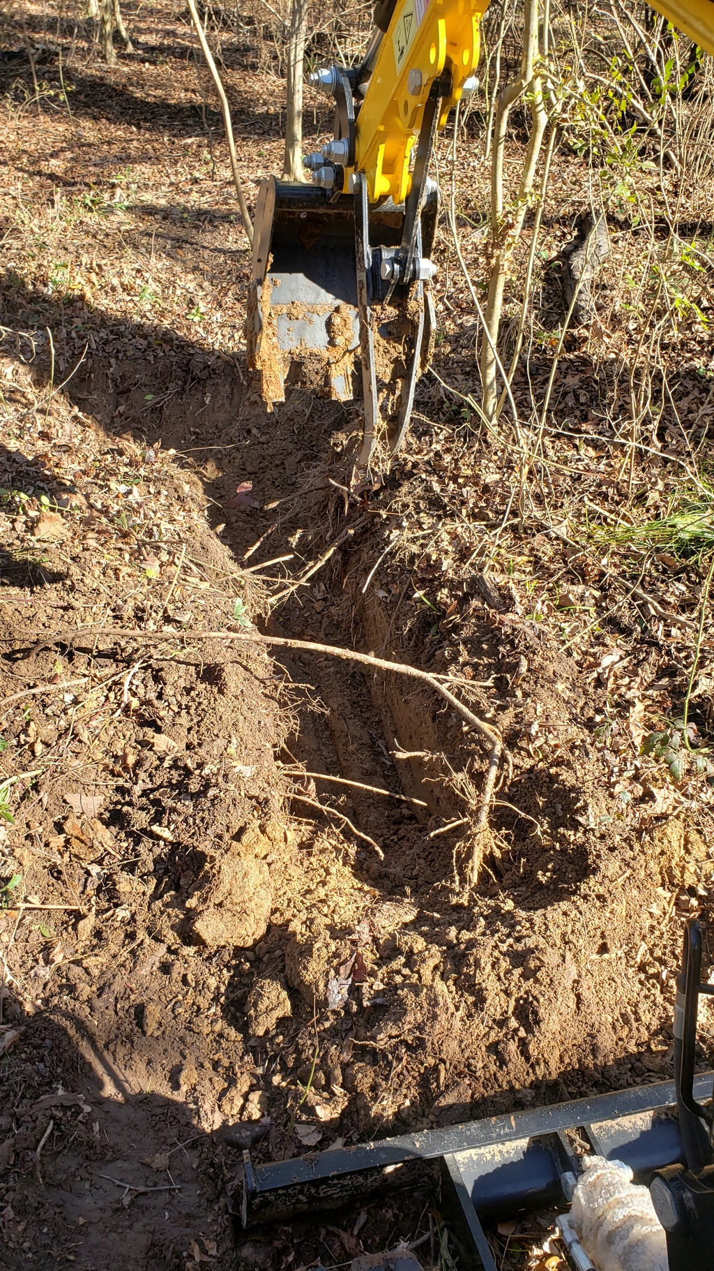 This small excavator is perfect for working in and around small areas. It has approximately 400lbs of digging capability which makes it perfect for those jobs where hand digging would be the only alternative. This is like using a shovel but many times faster, easier, and more fun.