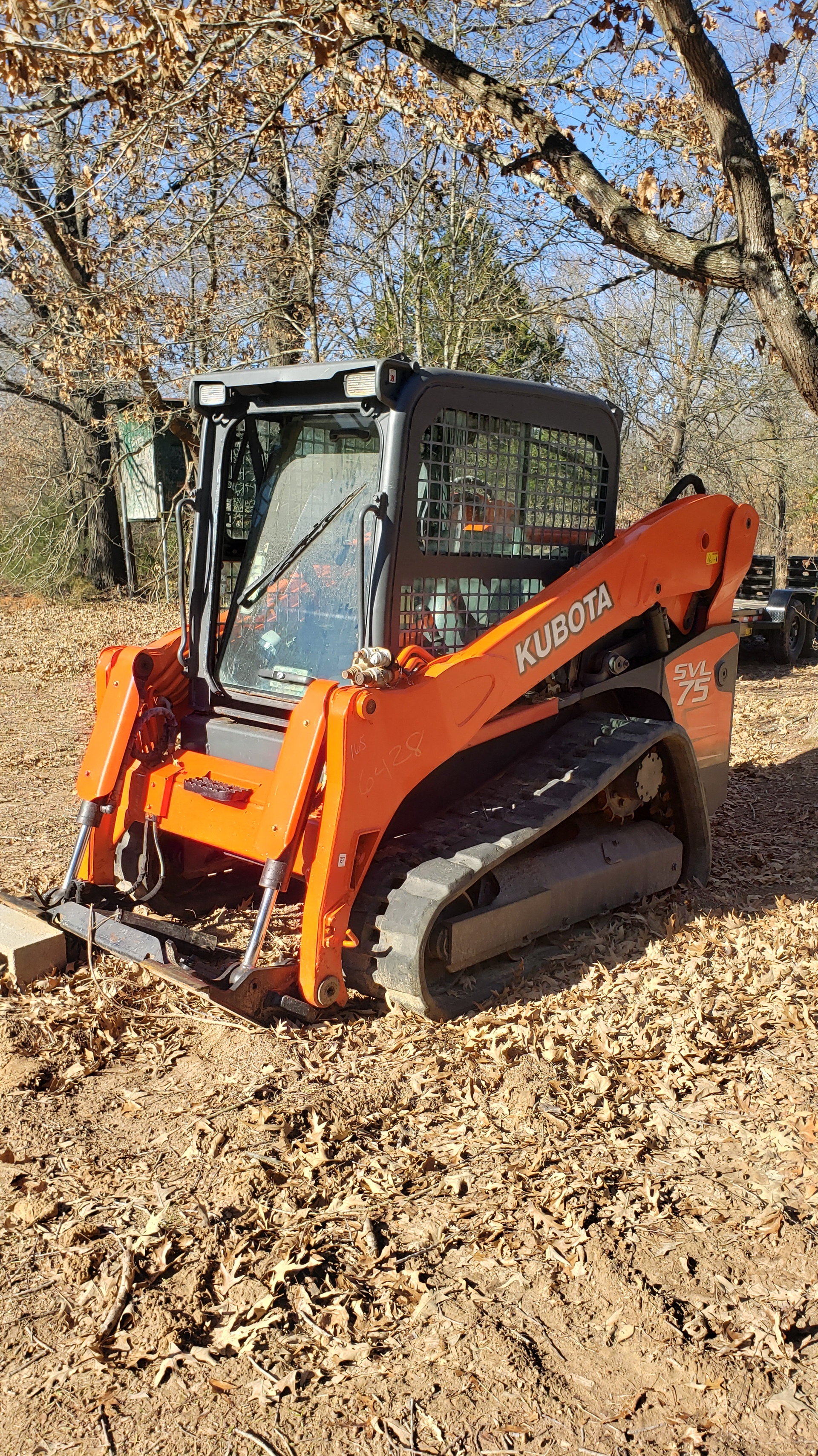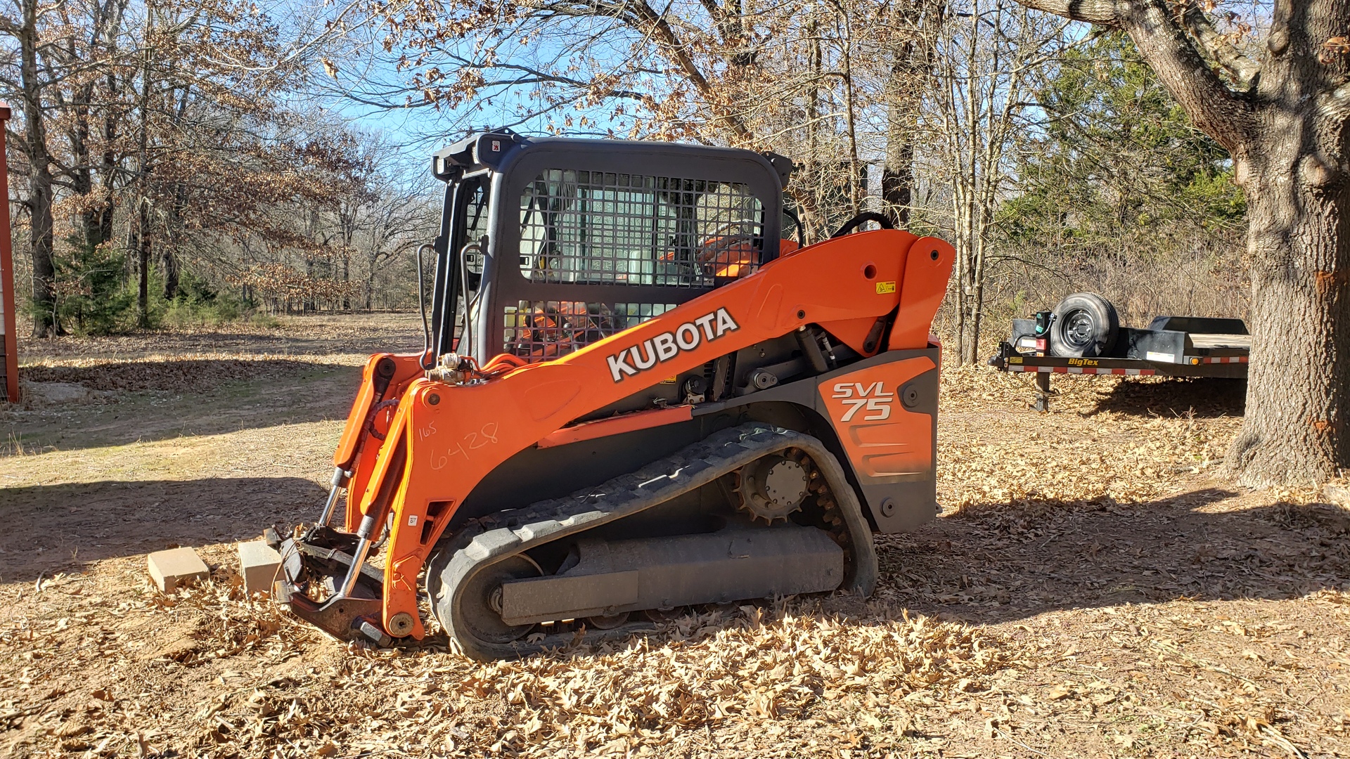 The Kubota SVL-75 is a midsize skid loader. It is useful for moving or leveling dirt and other materials. It is also capable of using various attachments such as post hole diggers and pallet forks.